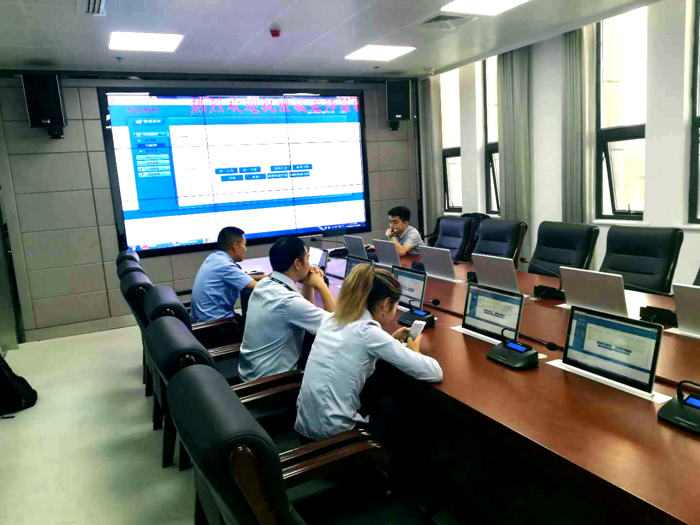 通過現(xiàn)場(chǎng)技術(shù)工程師安裝調(diào)試,反恐怖情報(bào)中心實(shí)現(xiàn)了系統(tǒng)一鍵開關(guān)機(jī)、高清信號(hào)互動(dòng)切換、遠(yuǎn)程音視頻切換、自動(dòng)視像跟蹤、音量控制等等,實(shí)現(xiàn)了音視頻及控制方式全智能型,符合當(dāng)今智能會(huì)議控制系統(tǒng)的要求,也得到畢節(jié)市公安局各領(lǐng)導(dǎo)的高度認(rèn)可和好評(píng)。